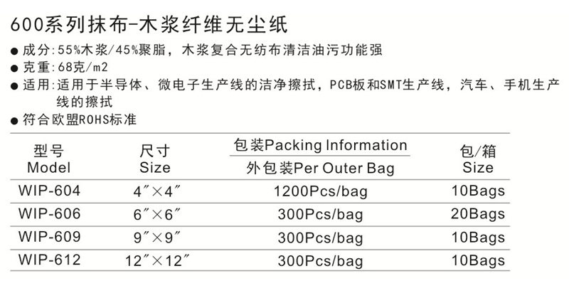 600系列抹布-木漿纖維無塵紙