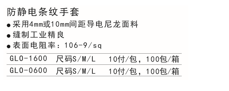 防靜電條紋手套